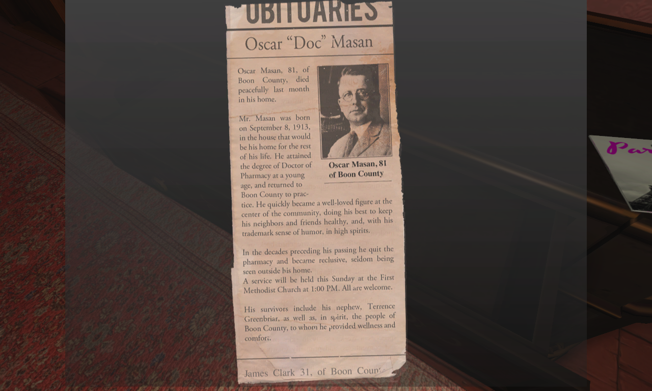Interesting design questions start to arise at this point. For instance, you want to be able to “read things,” but in the context of the game, what things do we make “readable”? A single-family home tends to contain hundreds of books. Allowing the player to literally read every single one of them would be bad both player-experientially, raising the text noise-to-signal ratio way above acceptable levels, and production-wise, as implementing and maintaining thousands of pages of text just wouldn’t be practical for us.