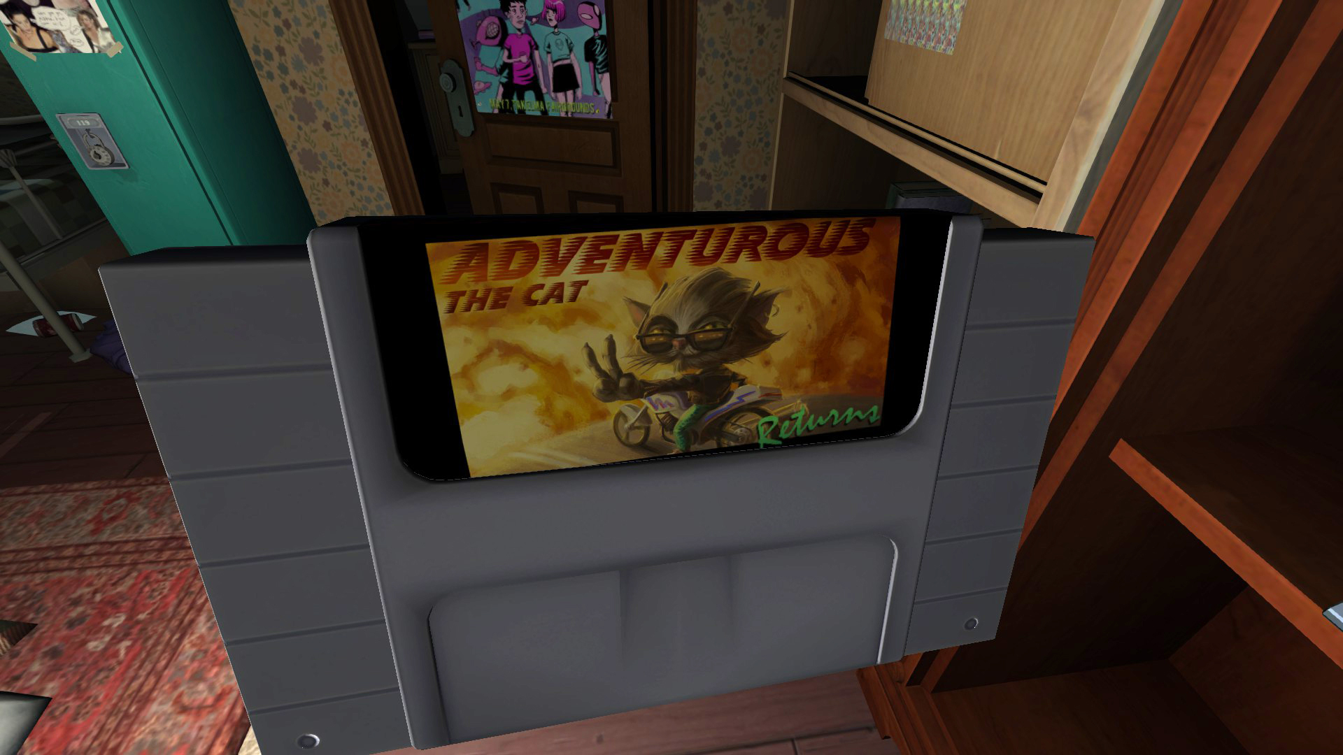 While playing Gone Home, you probably found at least one of the faux SNES carts in Sam’s room. What we haven’t yet revealed is that they feature guest art from awesome game artists, who kindly lent us their talents to create these unique cart labels.